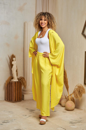 The Modiva Linen Glow Set is crafted from premium Spanish linen, combining breathability and elegance in one. Designed with flowy wide-leg pants and a relaxed kimono-style top, this set is perfect for a chic, modest, and comfortable look — whether for casual outings or elevated everyday wear.