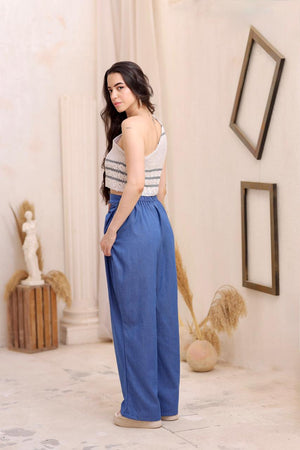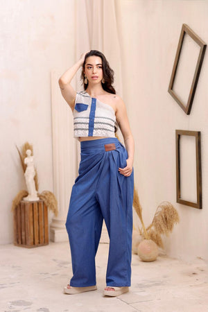 The Modiva Draped Pants are crafted from lightweight denim with a touch of lycra, giving you comfort and flexibility with a unique draped front design.