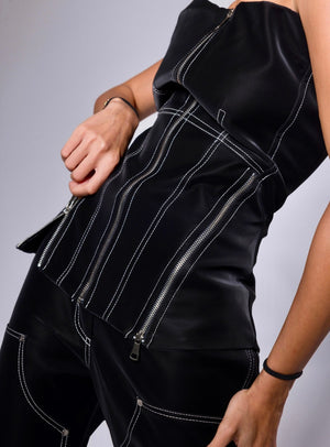 The contour top is crafted from premium leather that molds beautifully to the body.