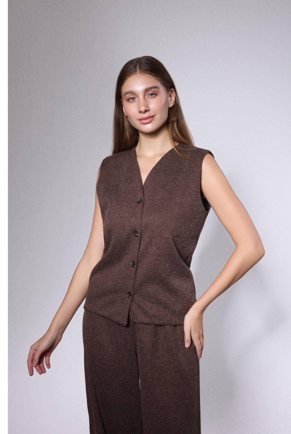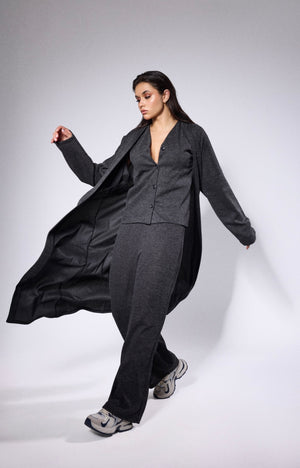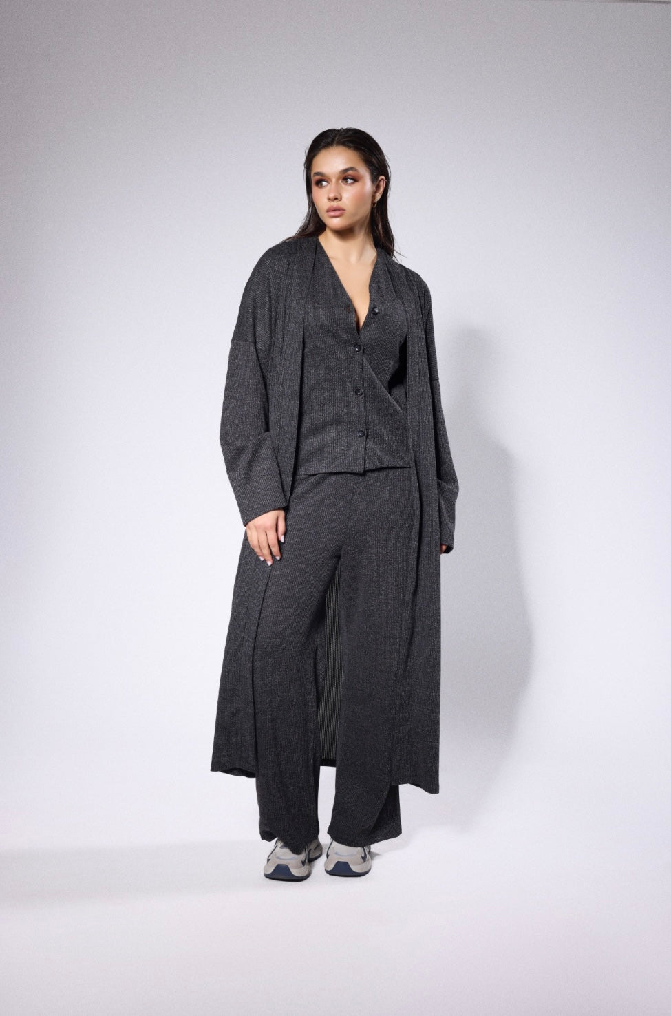 This set includes a tailored vest, relaxed-fit pants, and a flowy kimono, giving you a chic layered look perfect for winter days and stylish nights.