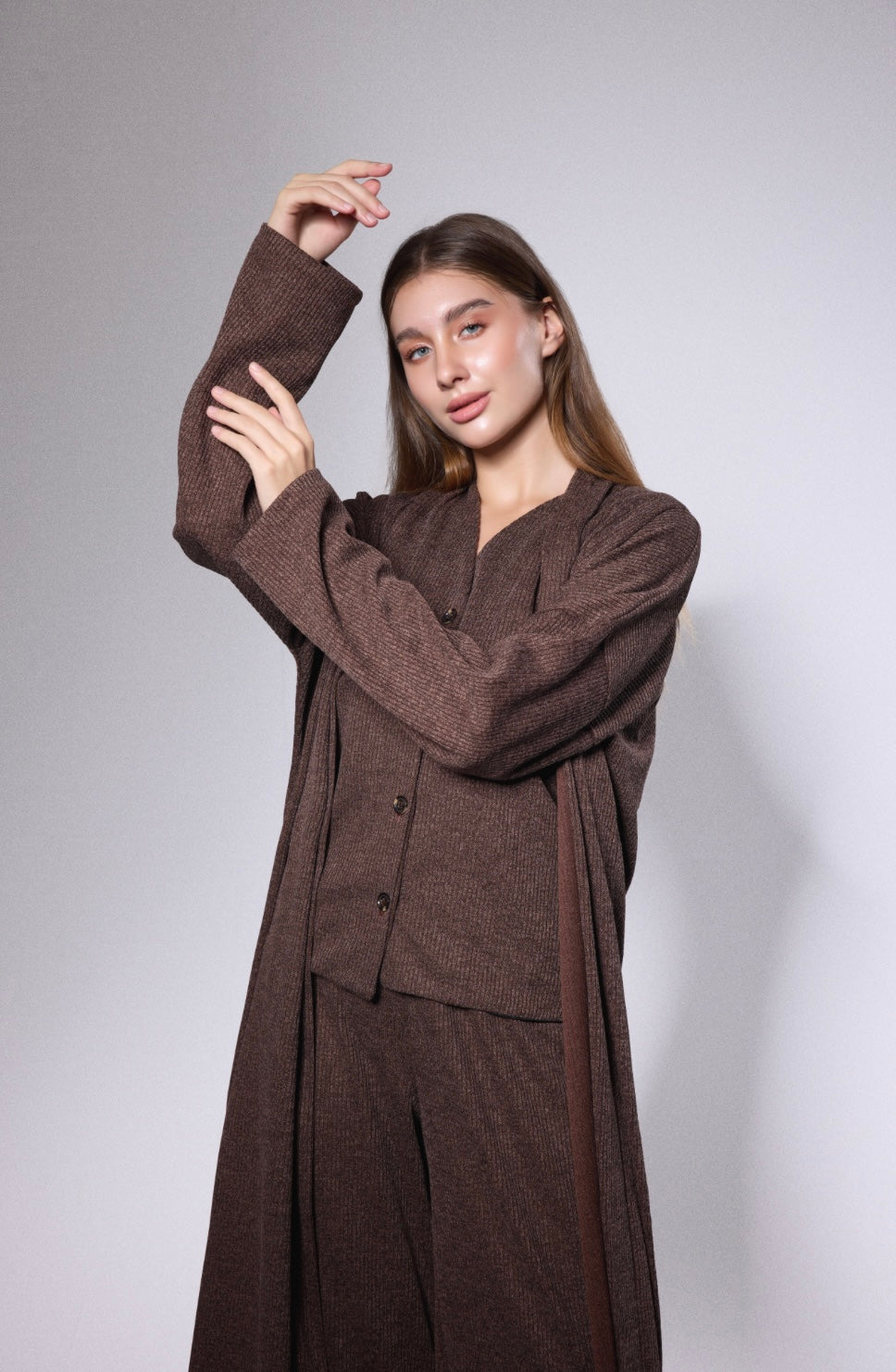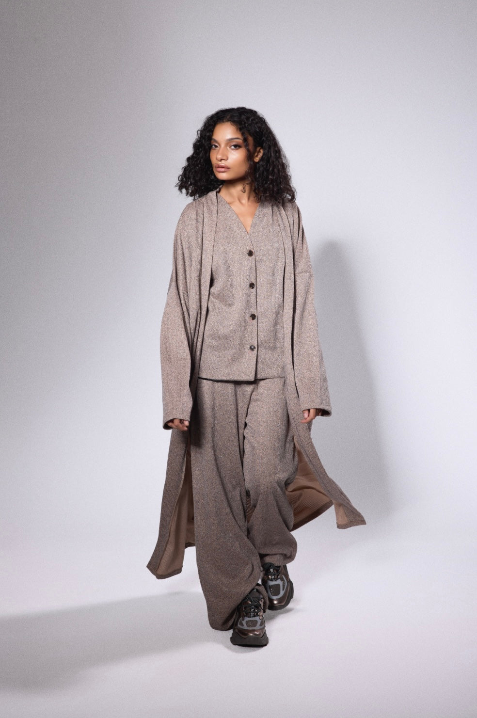 Step into effortless elegance with the Cozy Flow Trio Set — a three-piece ensemble crafted from premium, flexible wool that naturally adapts to your body shape for maximum comfort.