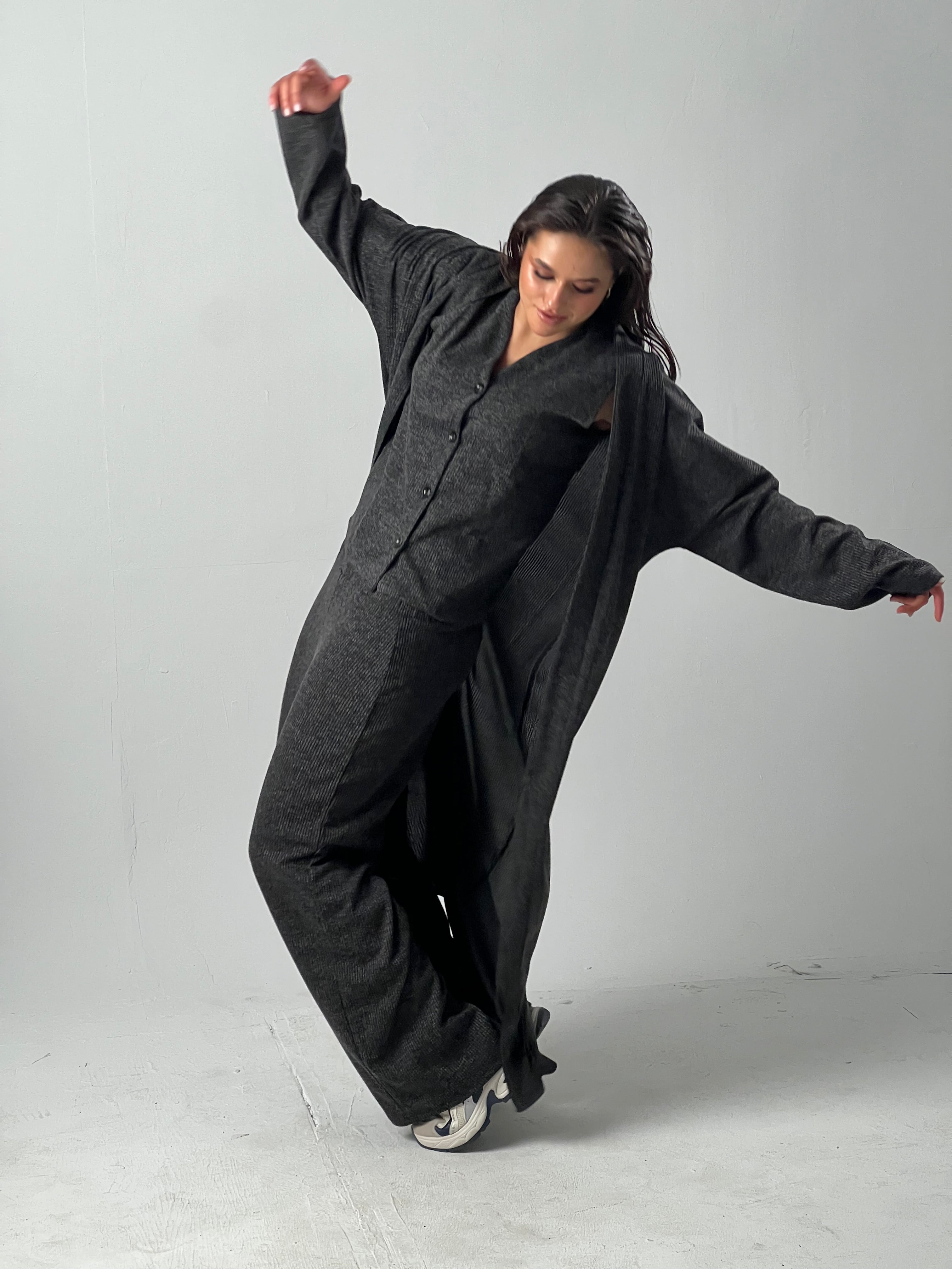 This set includes a tailored vest, relaxed-fit pants, and a flowy kimono, giving you a chic layered look perfect for winter days and stylish nights.