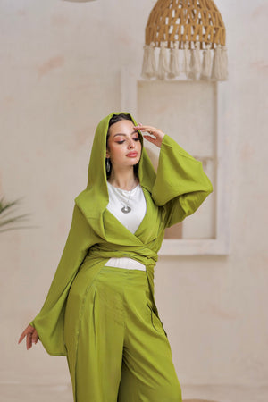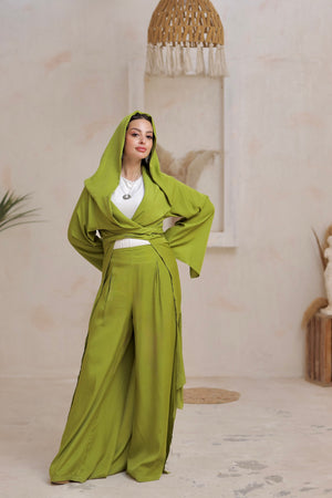 The Modiva Breeze Set is crafted from premium cotton voile, offering a soft, lightweight, and breathable feel against the skin. Designed with flowy wide-leg pants and a relaxed hooded kimono-style top, this set combines elegance with everyday comfort. Perfect for staying chic and effortless in both casual and lounge looks